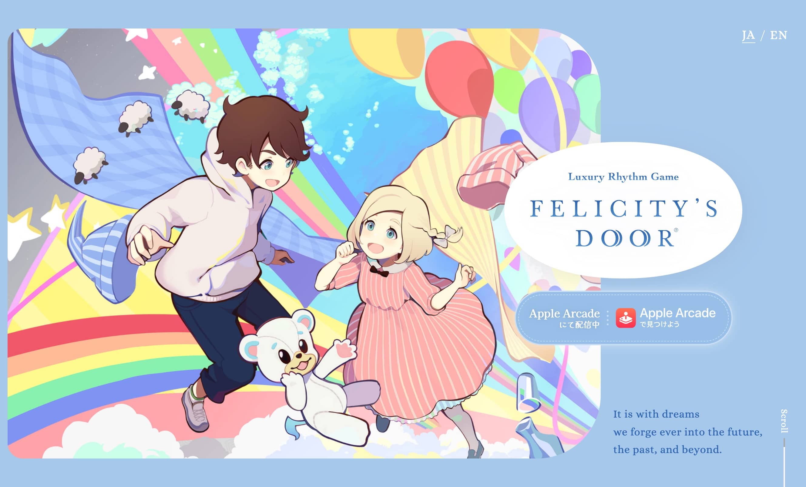 TGS 2023 上曾亮相的一款颜值音游 Felicity's Door 近日正式上架了。印象里它最初公布的平台是 NS,最终却以 Apple Arcade 独占的形式推出,有些出人意料。